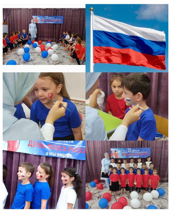 Согласно ЛОП МБДОУ «Детский сад №1 «Солнышко» с. Правобережное» на 2023 год. Традиционно, в нашем детском саду, проведен праздник Российского флага. 22.08.2023 года прошло мероприятие приуроченное ко дню Российского флага активное участие приняли дети средней группы. Мероприятие подготовили воспитатель средней группы «Бабочки » Хасиева А.А., Хаспиева М.М.. Для ребят это запоминающийся, радостный и яркий праздник "День флага", на котором ребята узнали об истории появления Российского флага и его значимости для нашего государства.